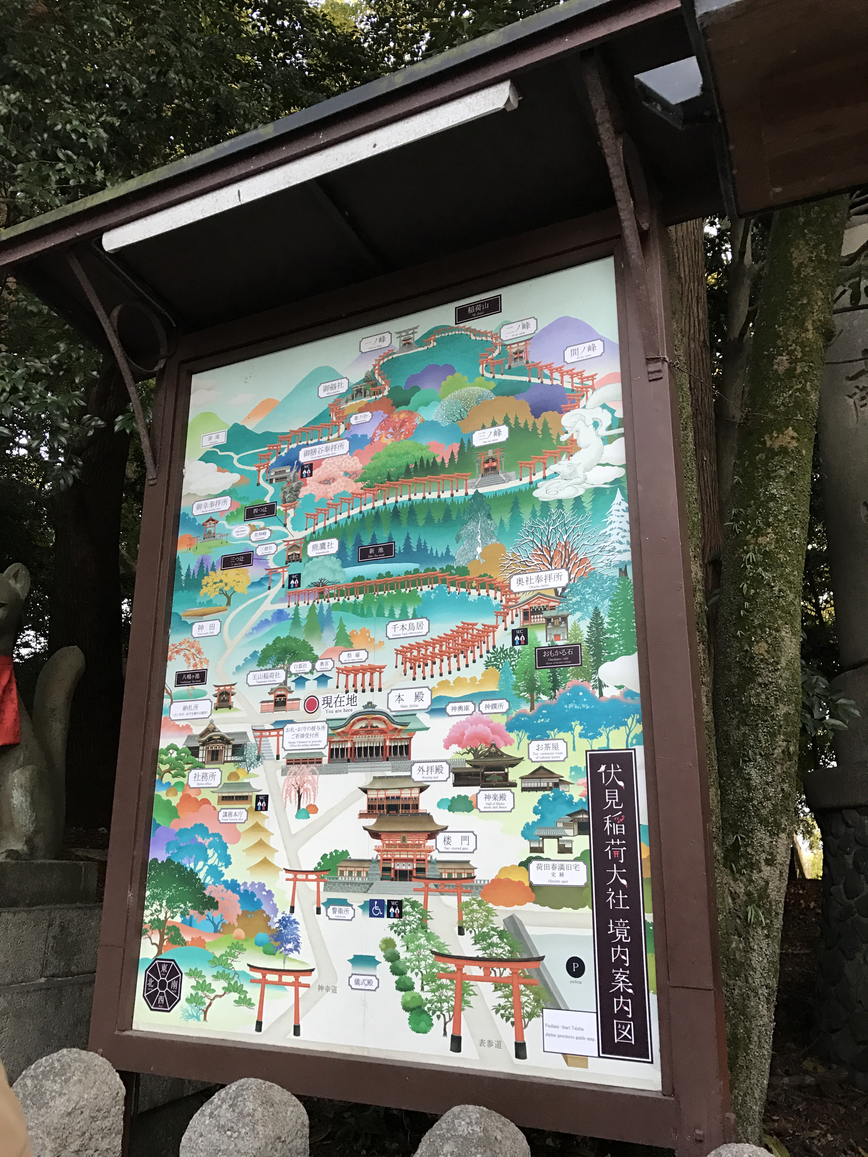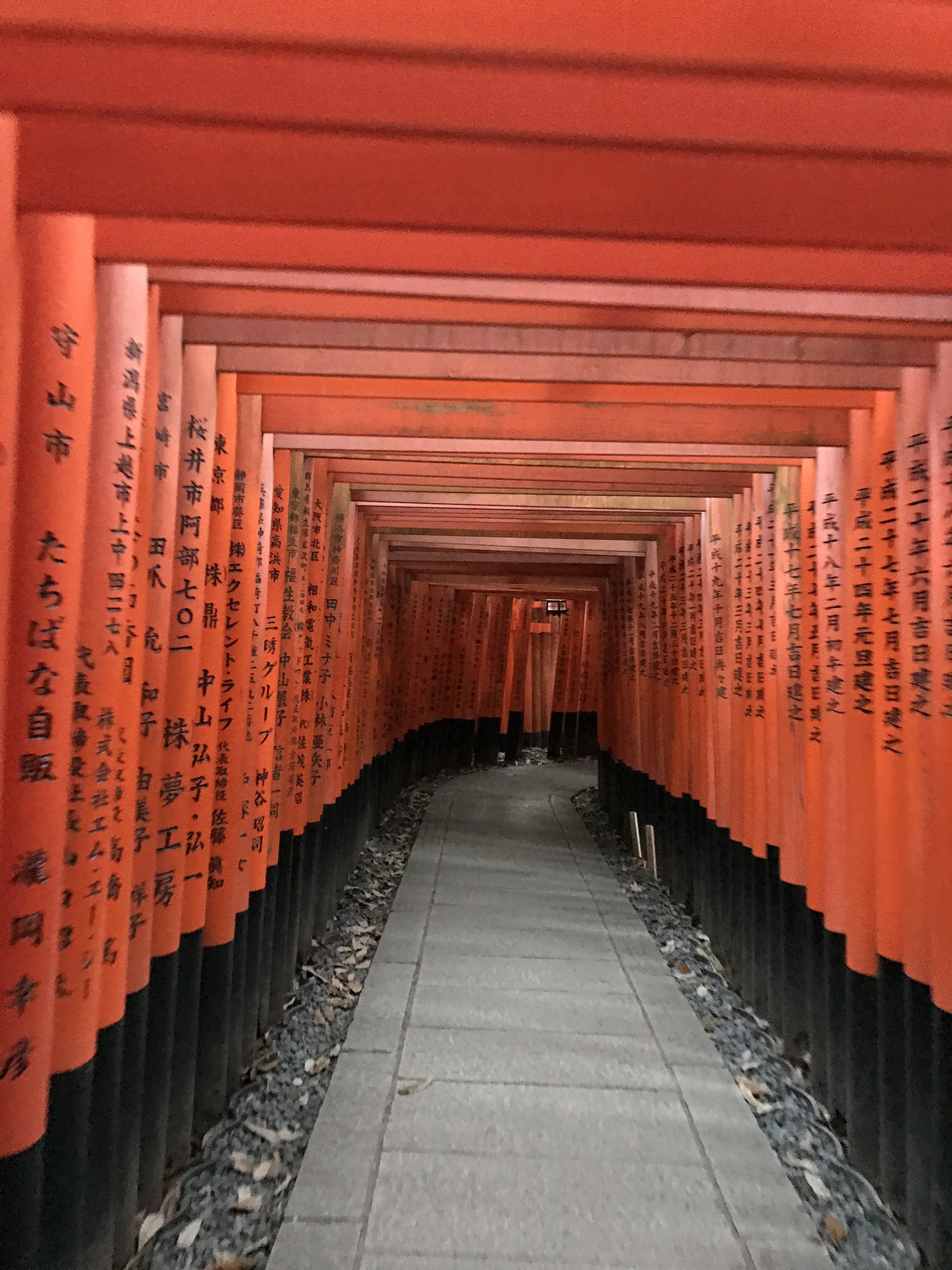 To climb and walk around the whole shrine takes approximately 3 hours. Also, the writing on the back of the gates are basically a business card (people pay several thousand yearly to have their names on gates).
