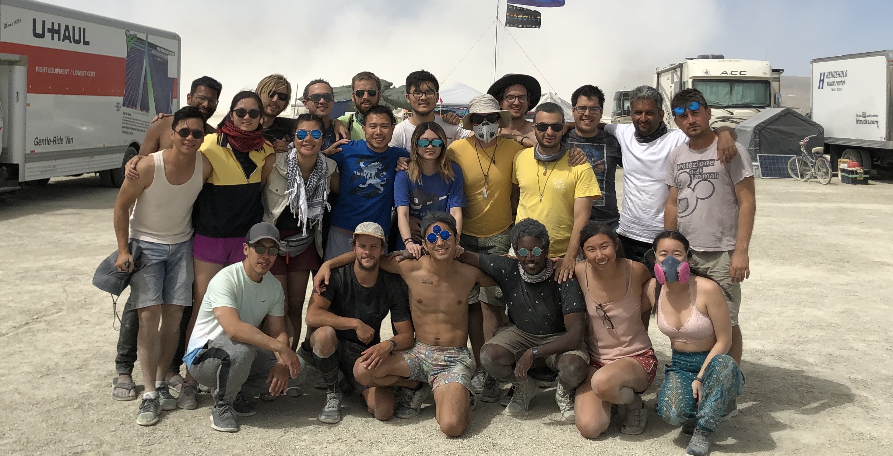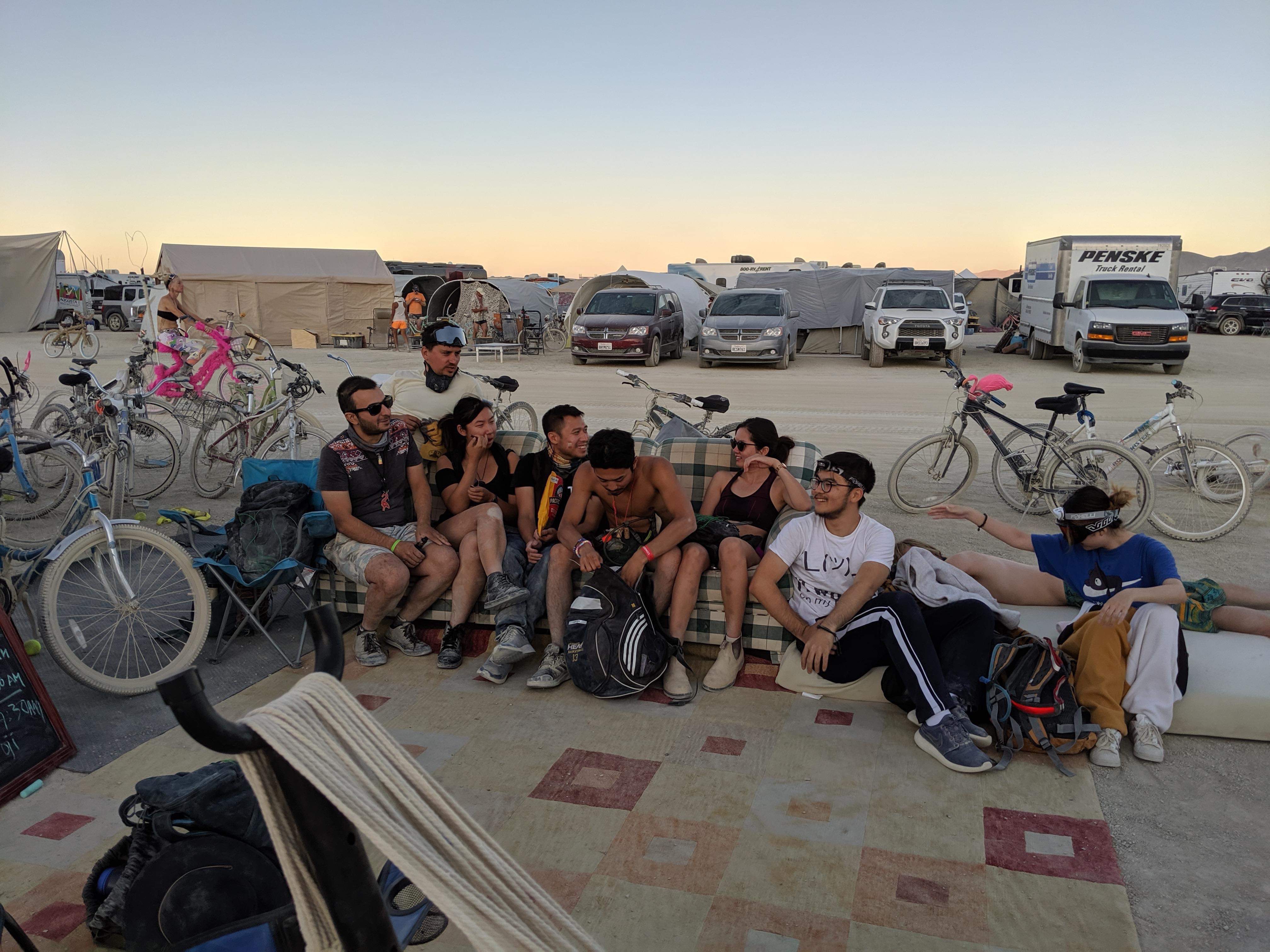Sunday Morning – we left Reno at 8pm (ditched the caravan idea), and then arrived at the line up around 11:30. We probably crossed the gates at 12:45am. We then set up minimal shade structure, plus the tents and yurts that night. Slept at 6:30am.