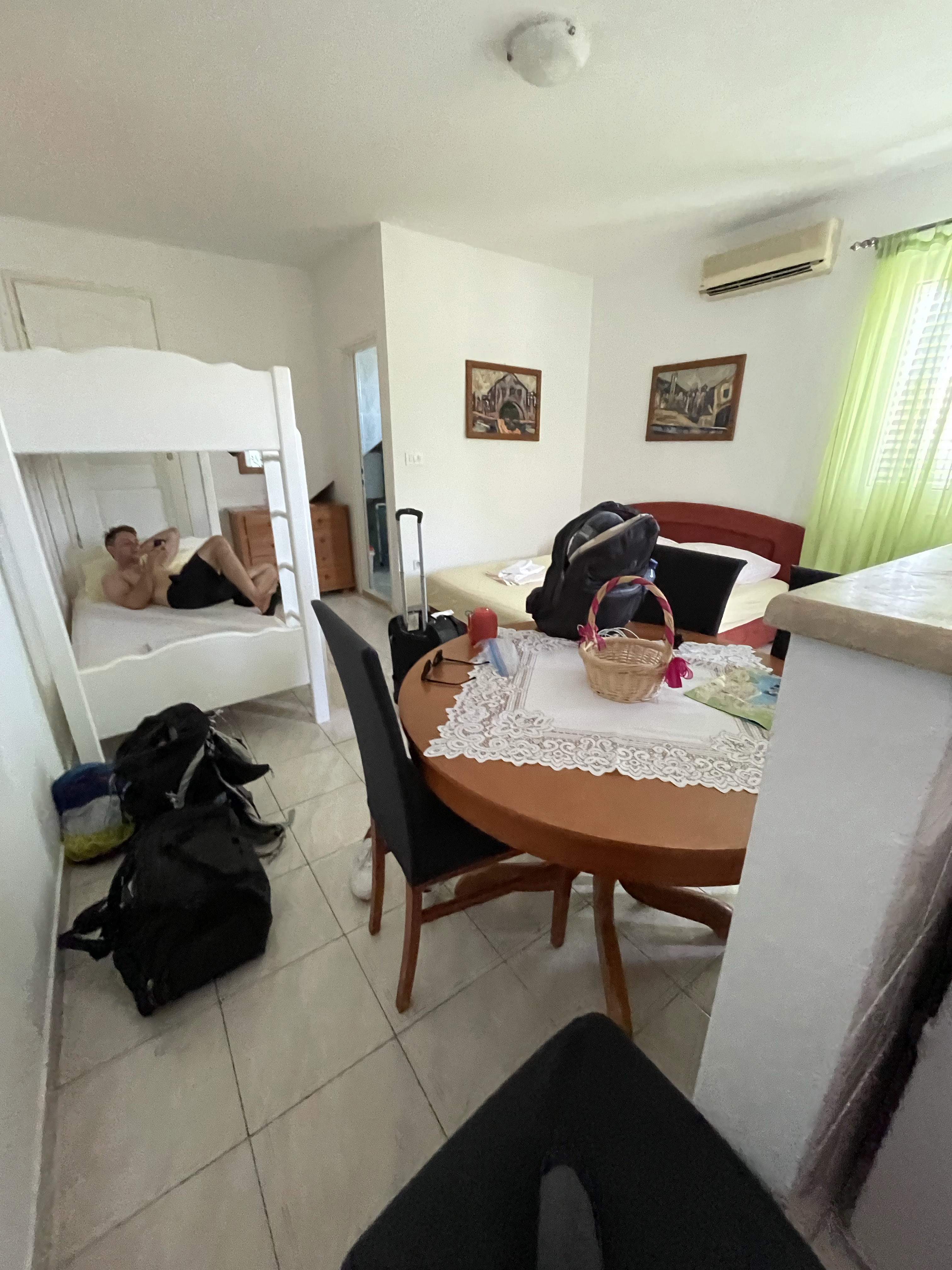 The apartment we rented out was an 8 minute walk up hill (a bit tiring because of the heat). But the place was actually pretty good for a last minute find.